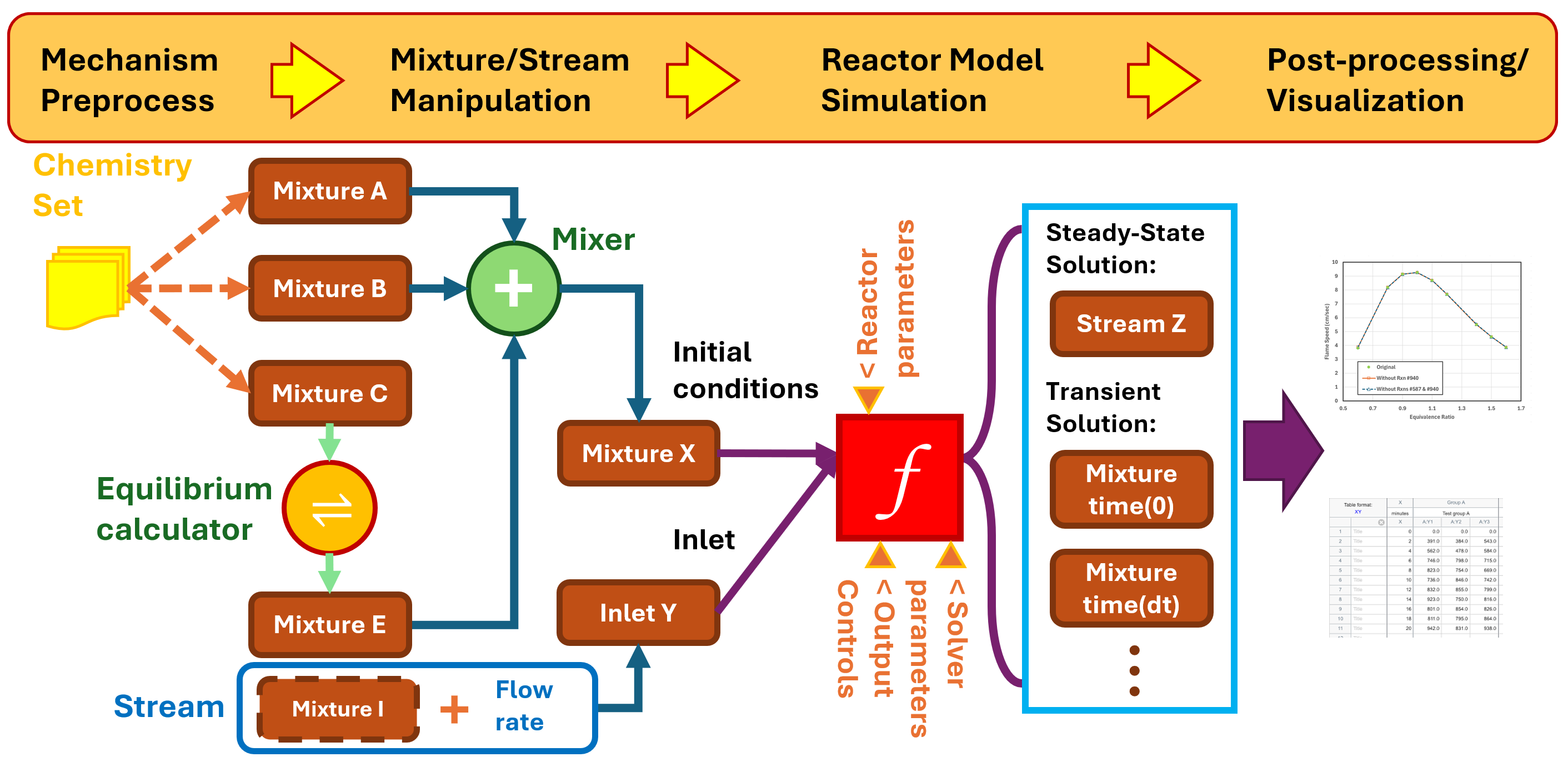 Reactor: An instance of a Chemkin reactor model that transforms the initial mixture into another mixture.